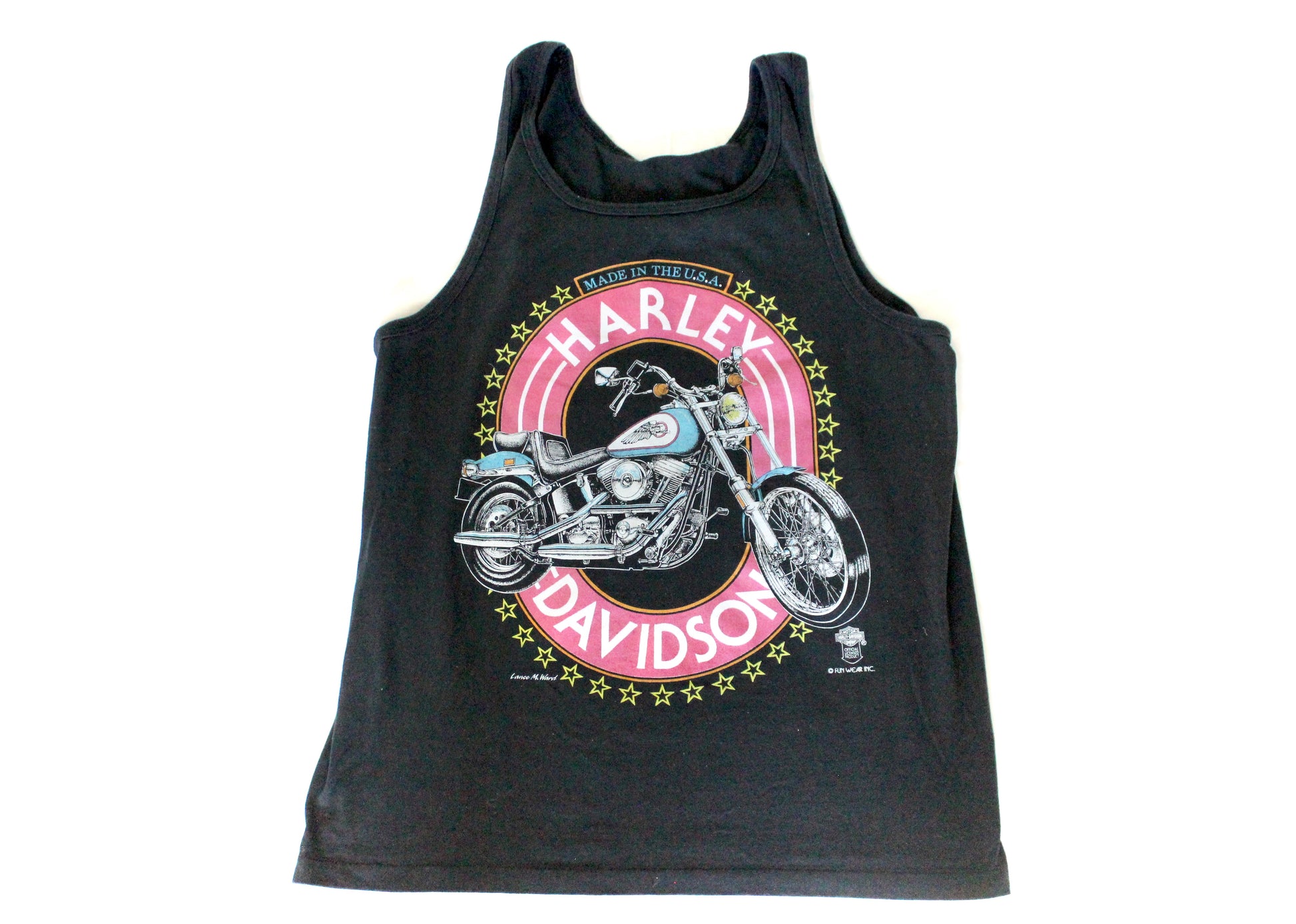 Vintage black 90s Harley Davidson Motorcycle tank, made in USA by Funwear Inc. No size tag please see measurements.