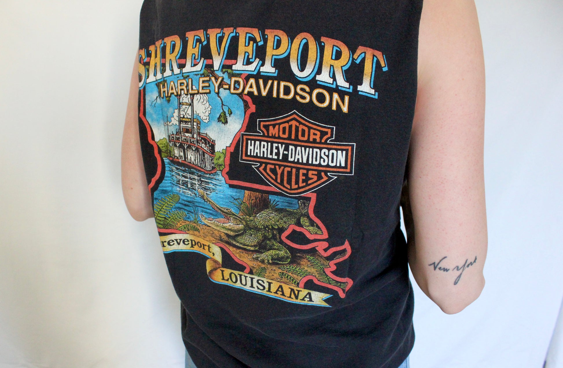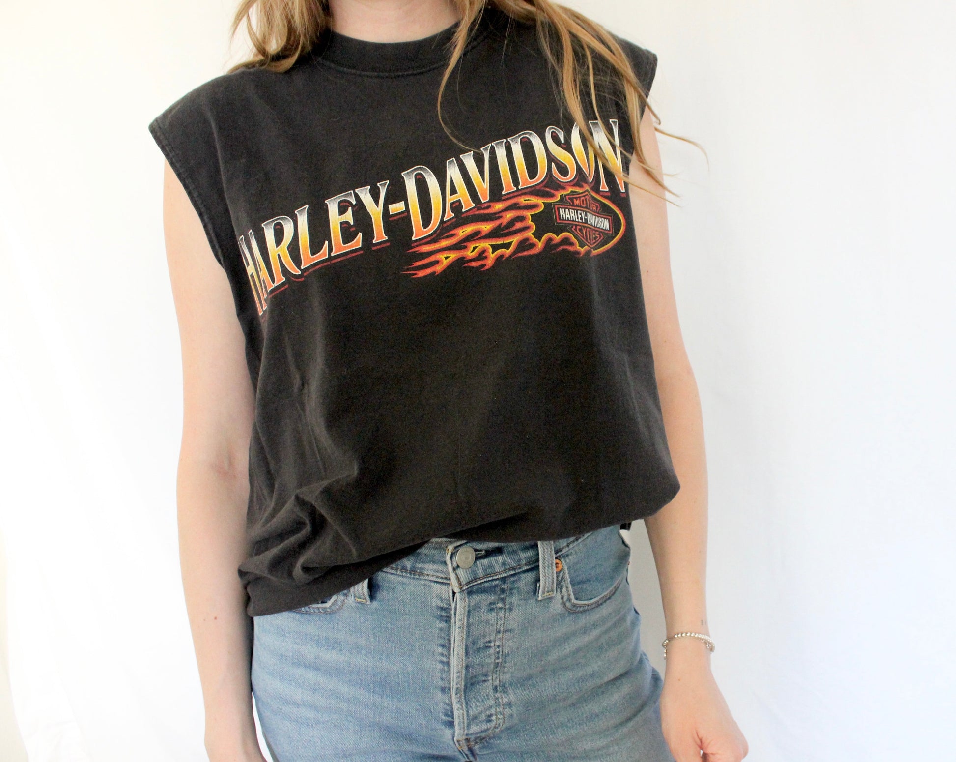 Vintage black Harley Davidson flames muscle tank from Louisiana. Labeled size L please see measurements.