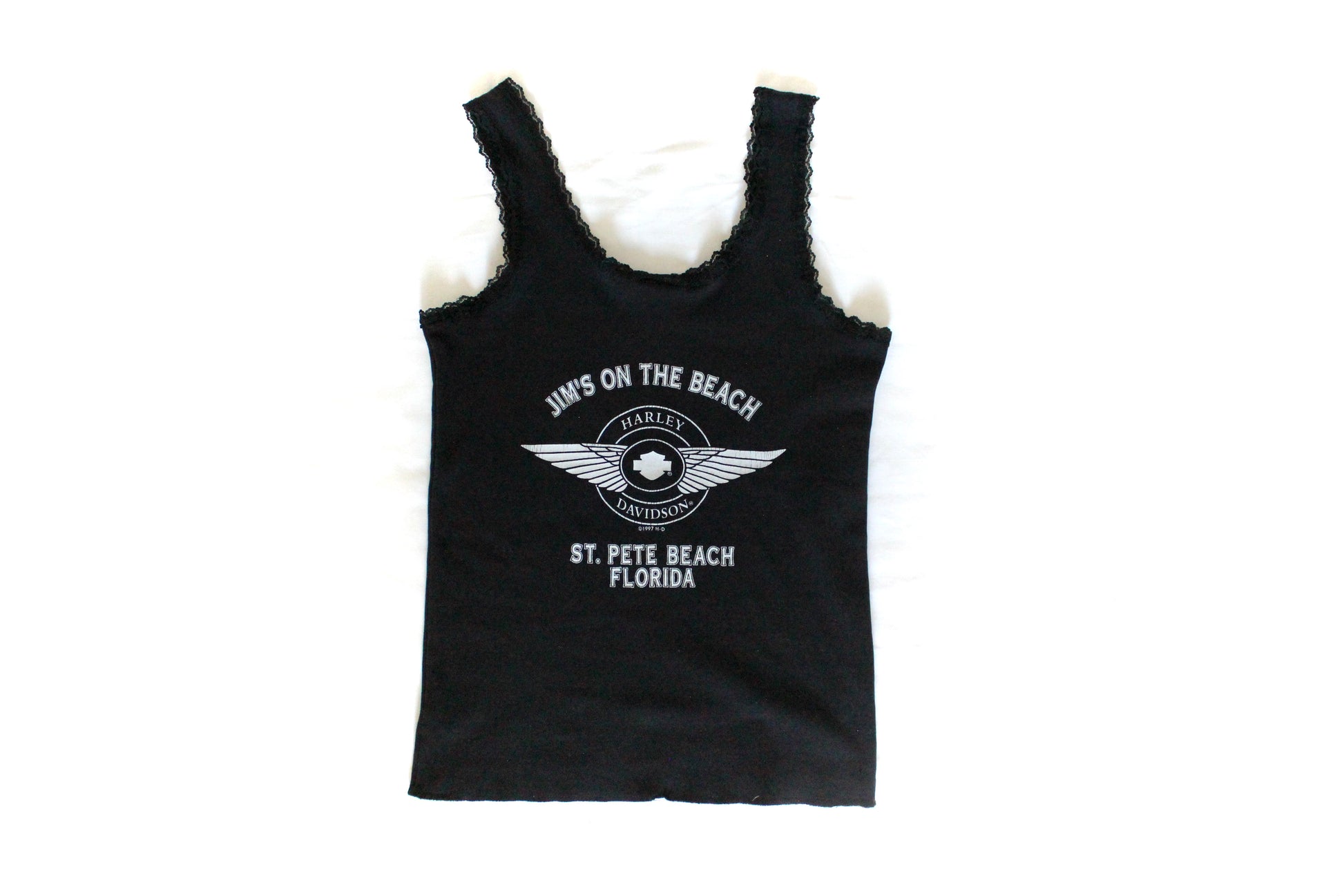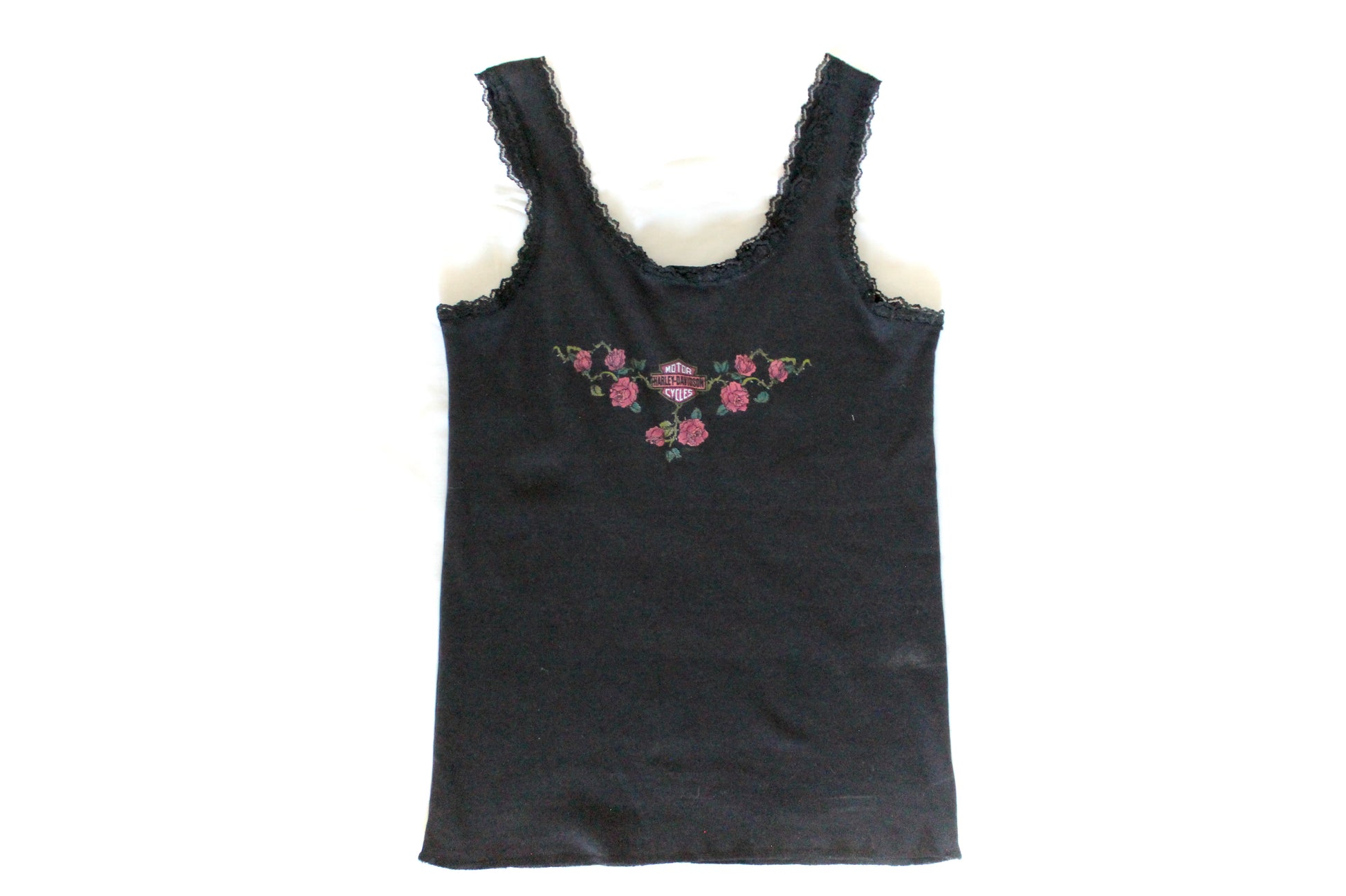 Vintage black 90s Harley Davidson lace trim tank. Labeled size L please see measurements.