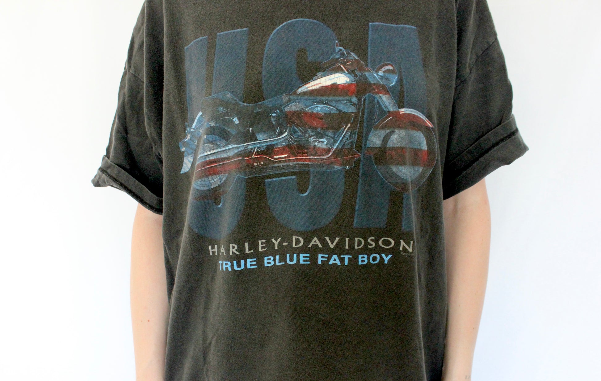 Vintage black Harley Davidson USA 'True Blue Fatboy' tee from Grand Canyon, Arizona. Labeled size XL please see measurements.
